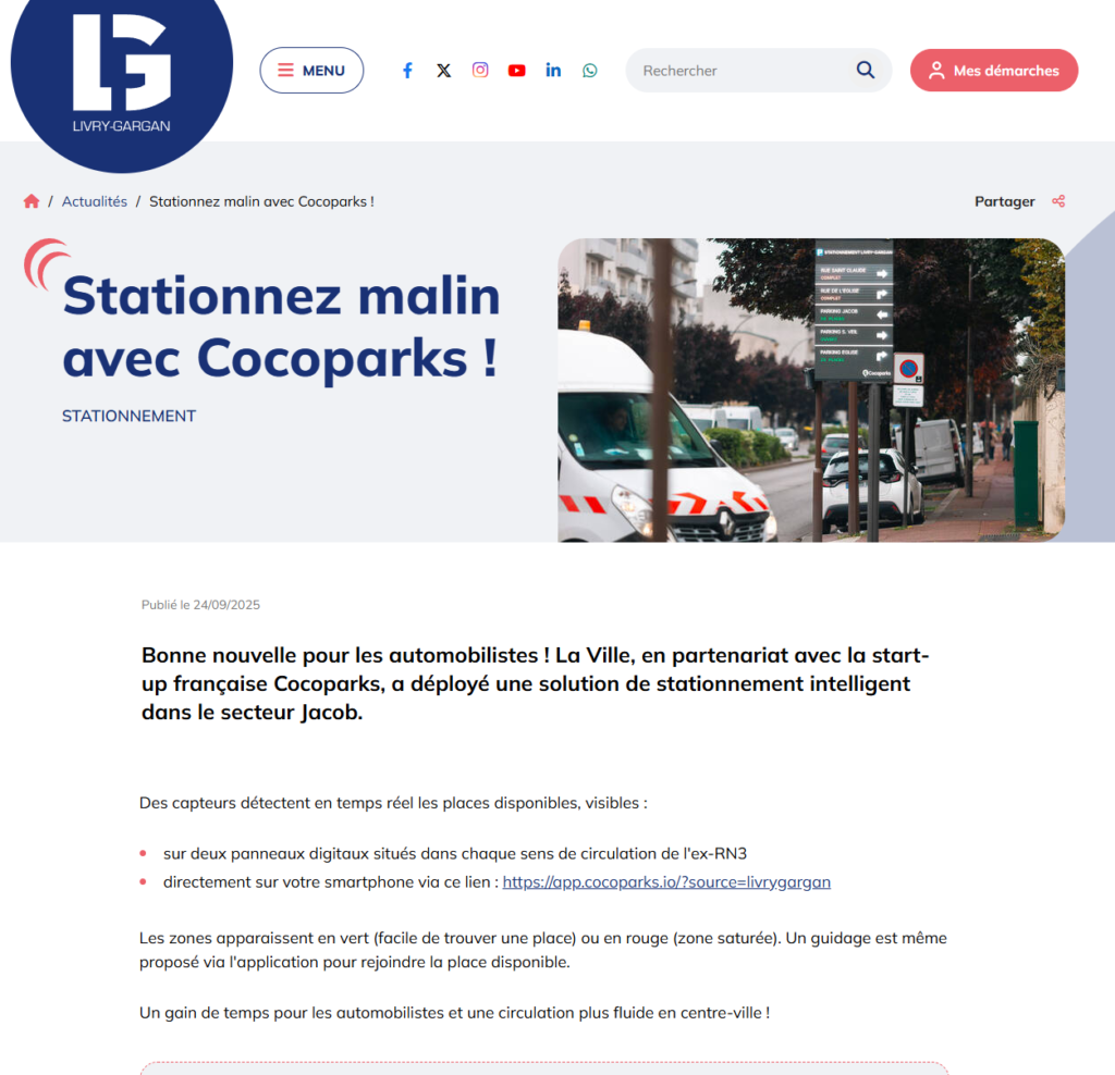 Livry-Gargan: intelligent parking in the city center with Cocoparks