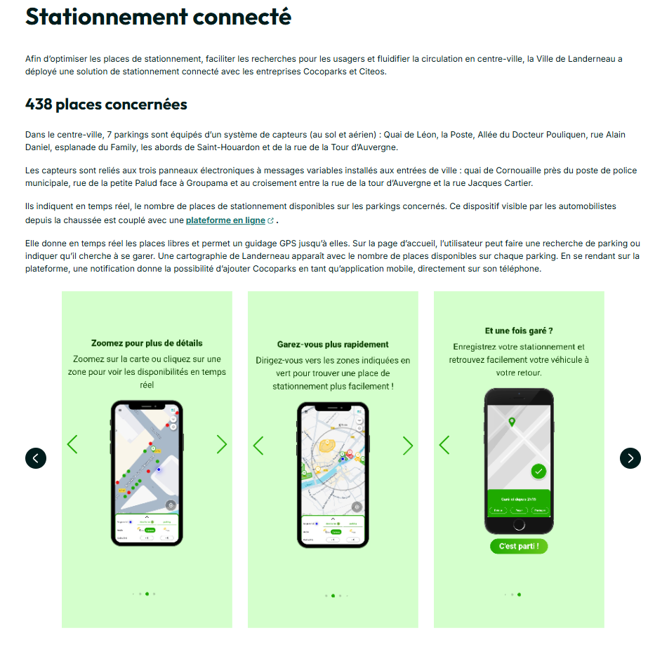 C’est dans ce contexte que la Ville fait appel à Cocoparks pour la solution technologique, et à Citeos sur la partie déploiement.